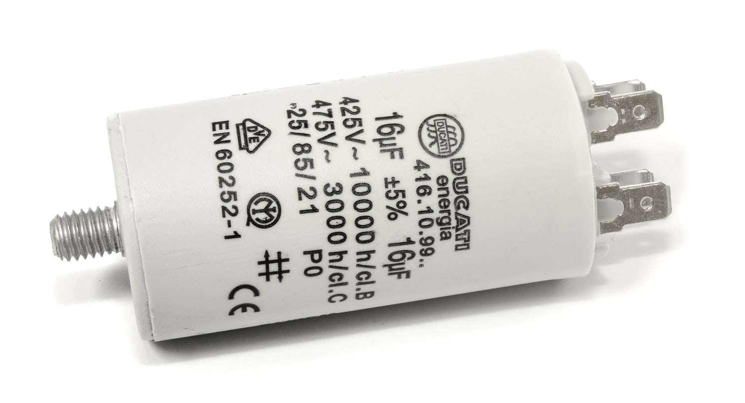 Condensatorul de $16\mu\text{F}$ (microfarazi) de la DUCATI Energia este o componentă electrică de înaltă performanță, esențială pentru motoarele asincrone monofazate. Fabricat în Italia, acest condensator de tip "motor run" este proiectat pentru a furniza cuplul de pornire necesar și pentru a optimiza factorul de putere în timpul funcționării motorului.