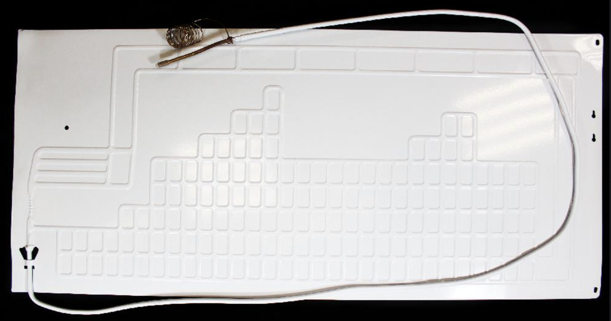 Principalul avantaj al modelului EVP001RK este prezența tevii capilare deja lipite din fabrică. Placa de aluminiu dispune de un înveliș special anticoroziv care protejează canalele de influența agresivă a umidității și a acizilor alimentari. Construcția flexibilă permite adaptarea plăcii în funcție de unghiurile interioare ale compartimentului pentru o fixare optimă.