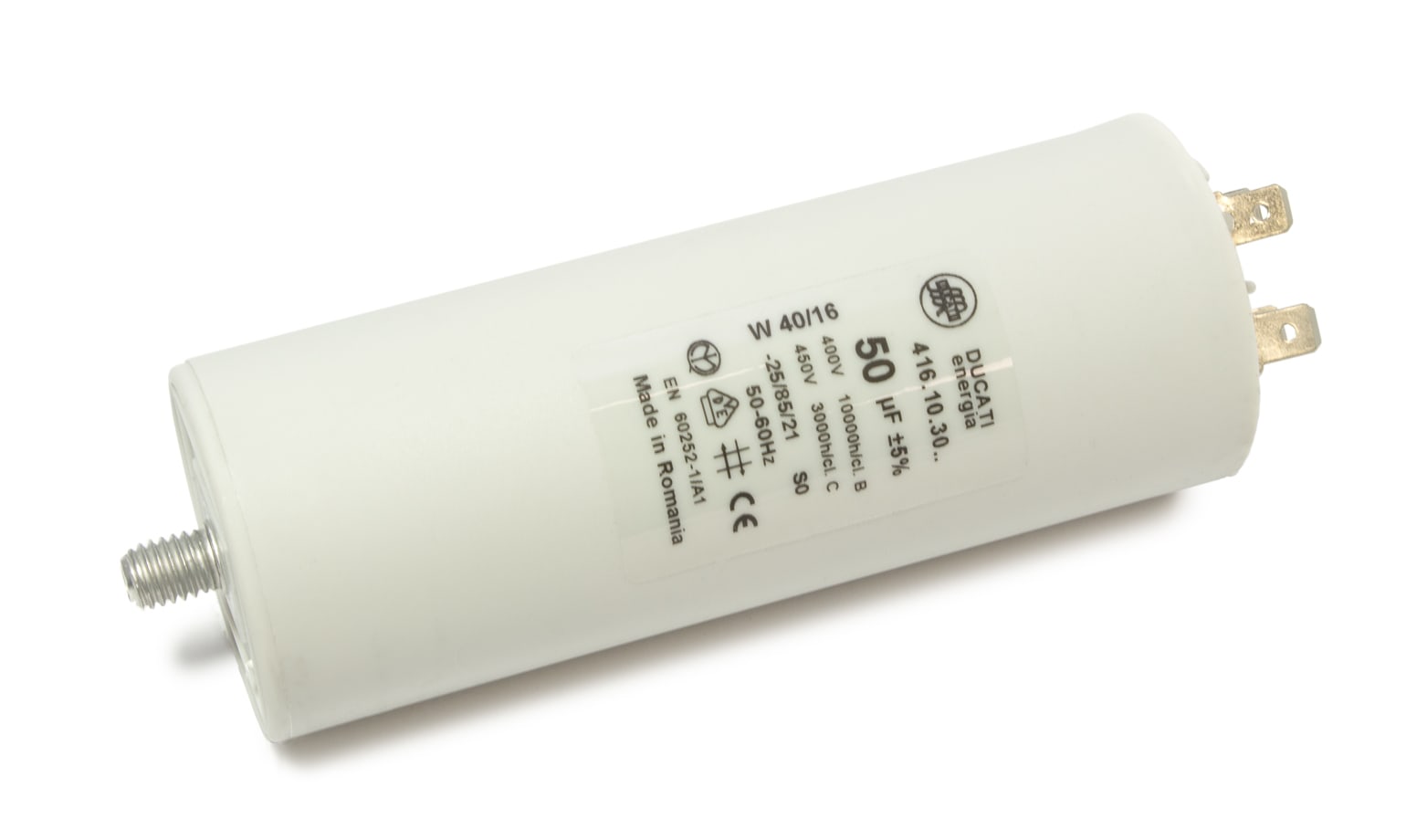 Condensatorul de 50µF (microfarazi) de la DUCATI Energia reprezintă vârful de gamă pentru motoarele asincrone monofazate de mare putere. Fabricat în Italia, acest condensator de tip "motor run" este proiectat pentru a furniza impulsul electric masiv necesar pornirii utilajelor grele, menținând în același timp o funcționare echilibrată și eficientă a motorului sub sarcină constantă.
