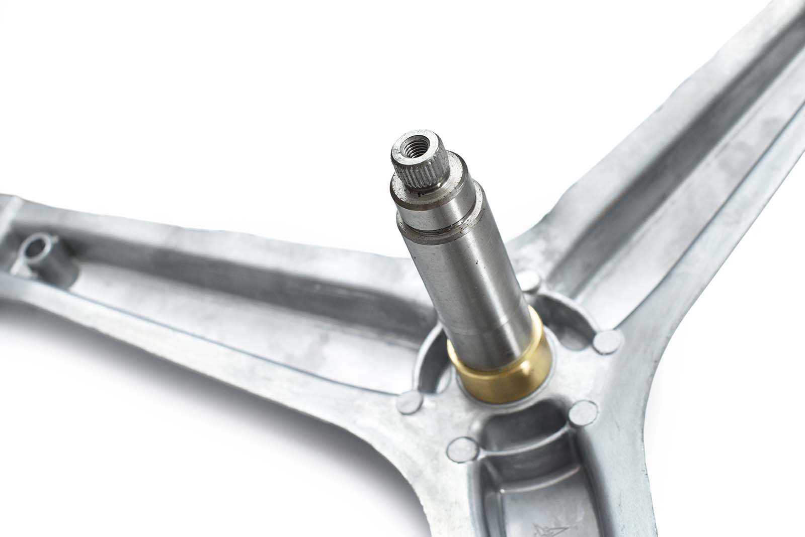 Configurația tehnică permite utilizarea rulmenților performanți 6306 și 6305. O atenție deosebită a fost acordată bucșei pentru simering (35 mm), care dispune de o suprafață rectificată fin pentru a asigura o etanșare etanșă, protejând astfel rulmenții împotriva pătrunderii apei și a detergenților.