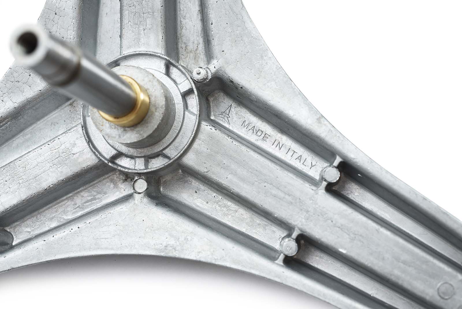 Tripoda cu codurile originale 587414 și 664886 (echivalent 09EB779) este concepută special pentru modelele clasice de mașini de spălat Gorenje (seriile WA, WS). Caracteristica distinctivă a acestei piese este axul extra-lung de 129 mm, care garantează o fixare rigidă a fuliei și o funcționare stabilă a curelei de transmisie, eliminând riscul de alunecare a acesteia.