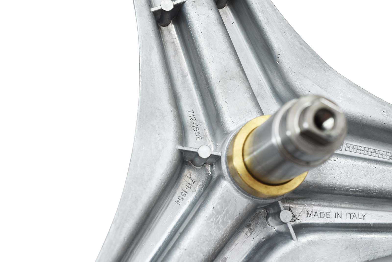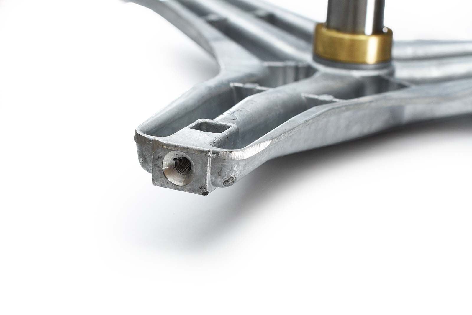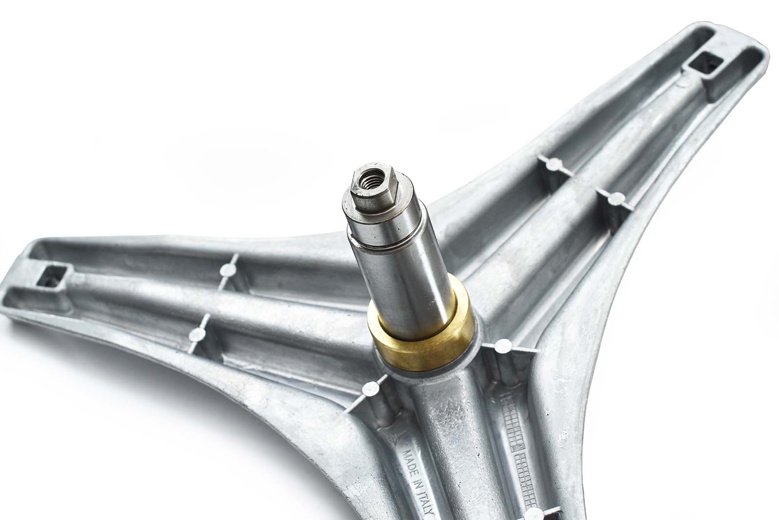 Tripoda cu codul 09EB774 este proiectată pentru mașinile de spălat premium din grupul Whirlpool, destinate spălării volumelor mari de rufe. Designul specific, cu un ax scurt și o grosime considerabilă, oferă o rezistență superioară la forțele de forfecare și previne micro-fisurile în brațele suportului în timpul centrifugării la viteze de până la 1400 RPM.