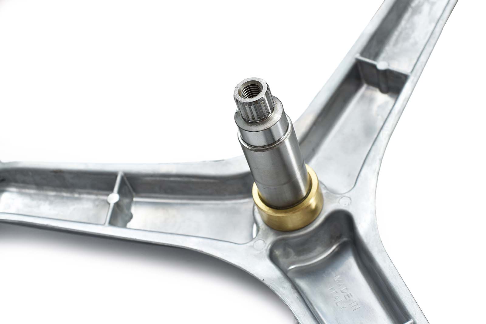 Axul cu o înălțime de 113 mm este calibrat pentru utilizarea rulmenților de mare capacitate: 6307 (interior) și 6306 (exterior). Suprafața bucșei pentru simering (Ø 45.5 mm) dispune de un finisaj de înaltă precizie, asigurând o etanșare perfectă și protejând întregul sistem de rulare împotriva infiltrațiilor de apă.