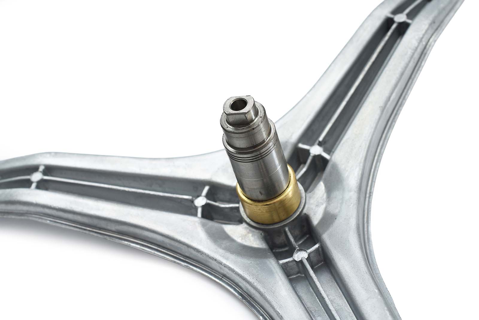 Axul tripodei este prelucrat prin șlefuire de înaltă precizie, asigurând o fixare impecabilă a rulmenților 6307 și 6306. Această acuratețe constructivă permite mașinii să funcționeze silențios chiar și la viteze de stoarcere de 1400–1600 RPM, protejând în același timp cuva și amortizoarele.
