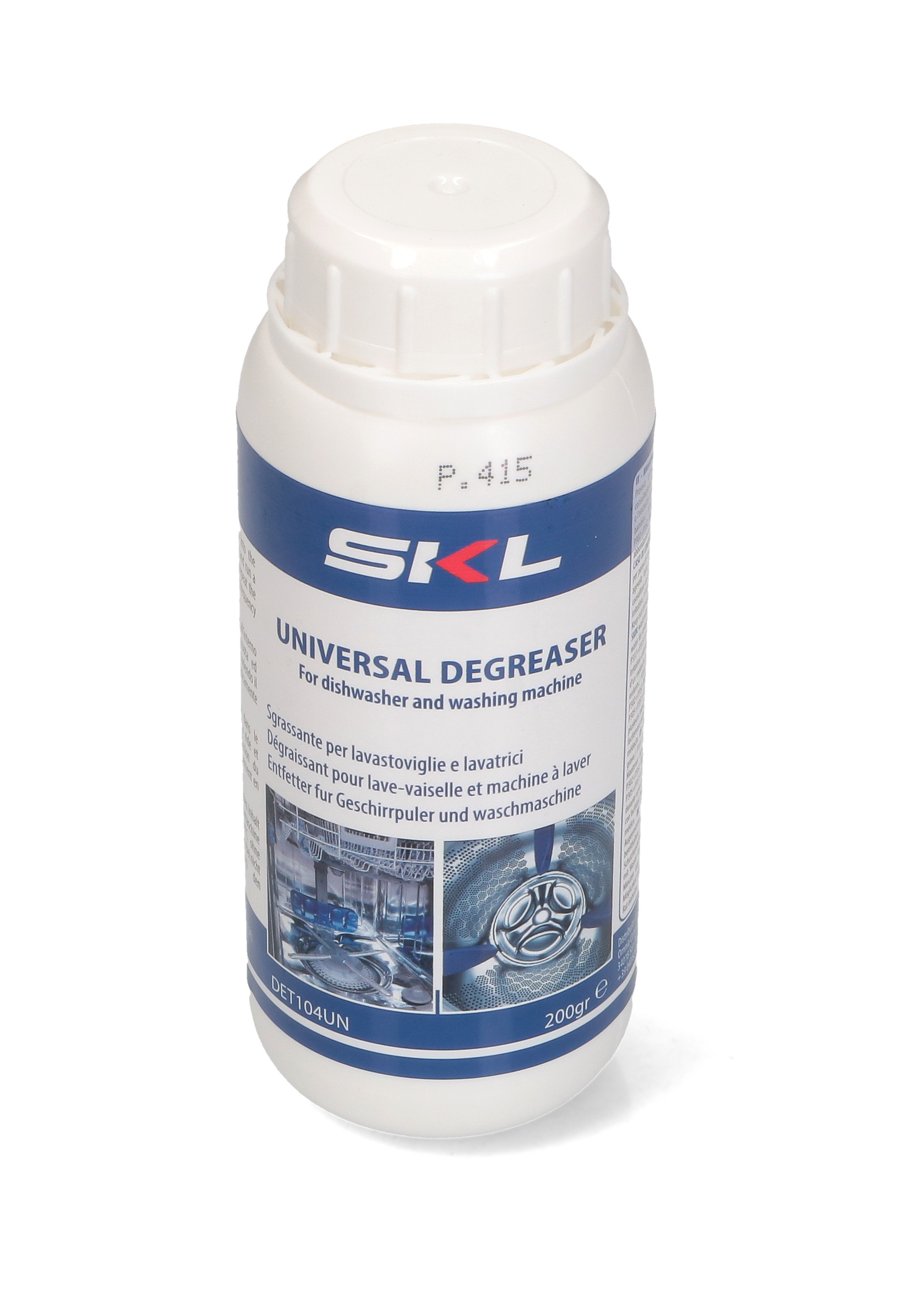Degresantul SKL DET104UN, 200 ml este o soluție de curățare universală concepută pentru îndepărtarea depunerilor de grăsime, resturilor de detergent și murdărie organică din interiorul mașinilor de spălat rufe și vase. Formula sa ajută la dizolvarea acumulărilor de grăsime și resturi, care pot afecta performanța echipamentului și pot cauza mirosuri neplăcute. :contentReference[oaicite:5]{index=5}