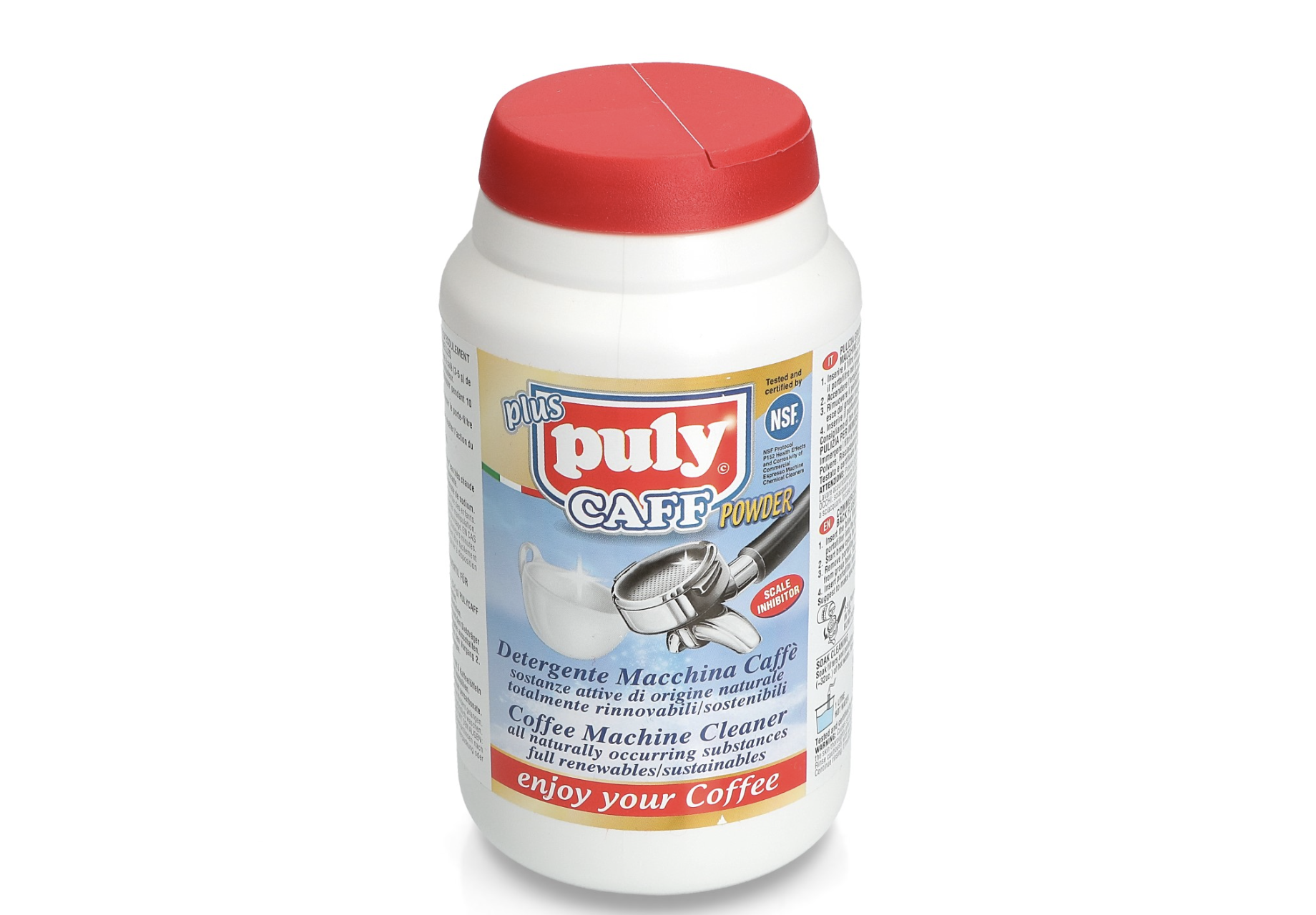 Datorită puterii sale mari de degresare, Puly Caff Plus restabilește gustul autentic al cafelei și prelungește durata de viață a aparatului prin prevenirea blocării electrovalvelor. Este un produs biodegradabil, sigur pentru componentele metalice și garnituri, fiind certificat NSF (National Sanitation Foundation).