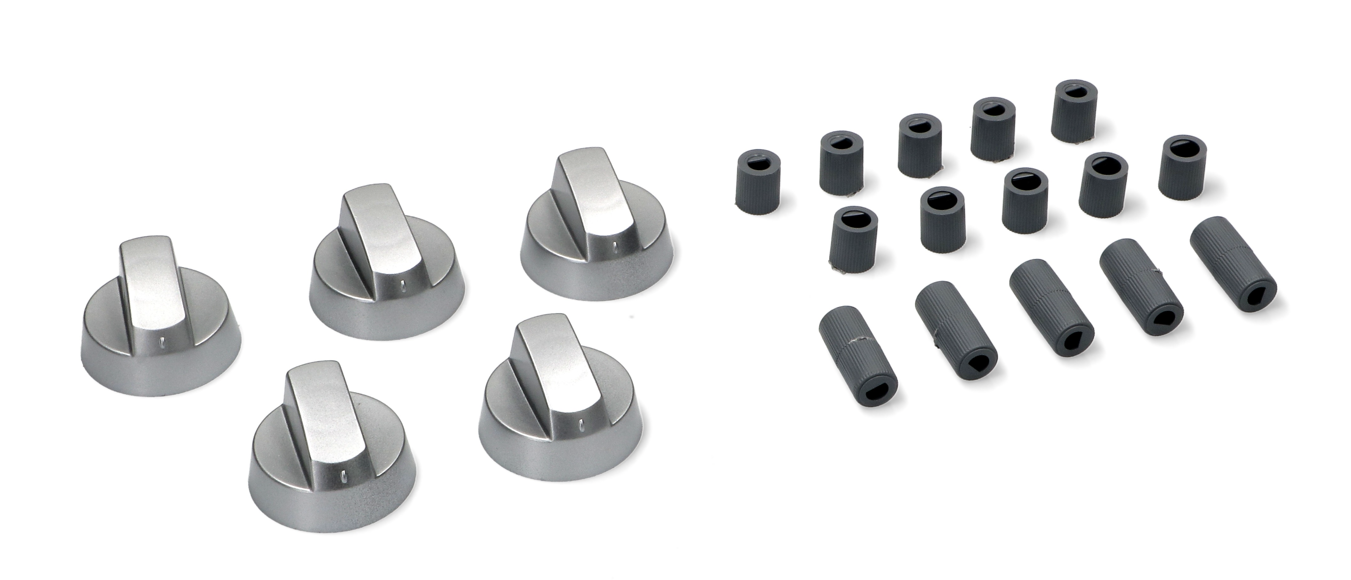 Accesorii si consumabileSet elegant de patru mânere universale de culoare argintie (Silver) pentru controlul aragazurilor pe gaz și electrice, plitelor și cuptoarelor.